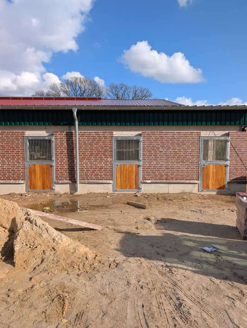 Der Klinker noch ohne Sturz, aber die ersten Paddocktüren verbaut. Nie sah eine verschlossene Tür besser aus.