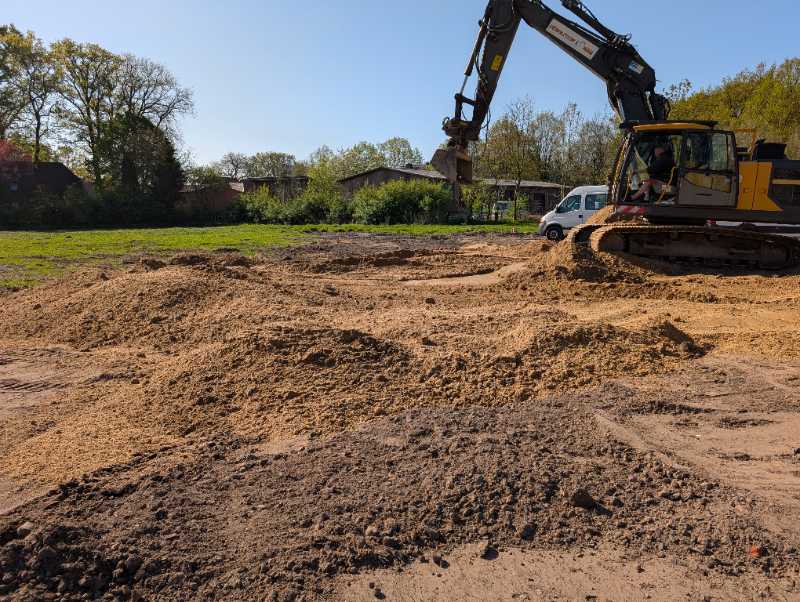 Man sieht langsam die Fläche, an der die Reithalle entstehen soll