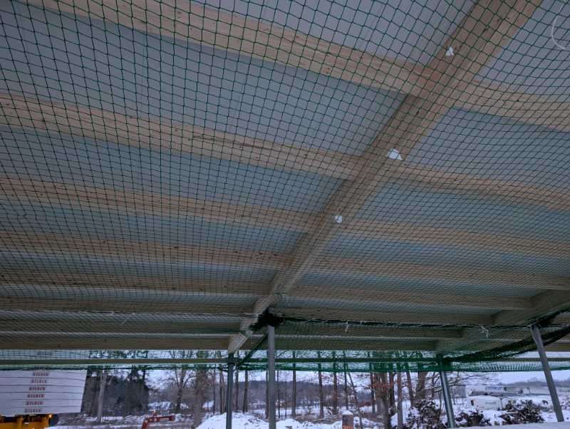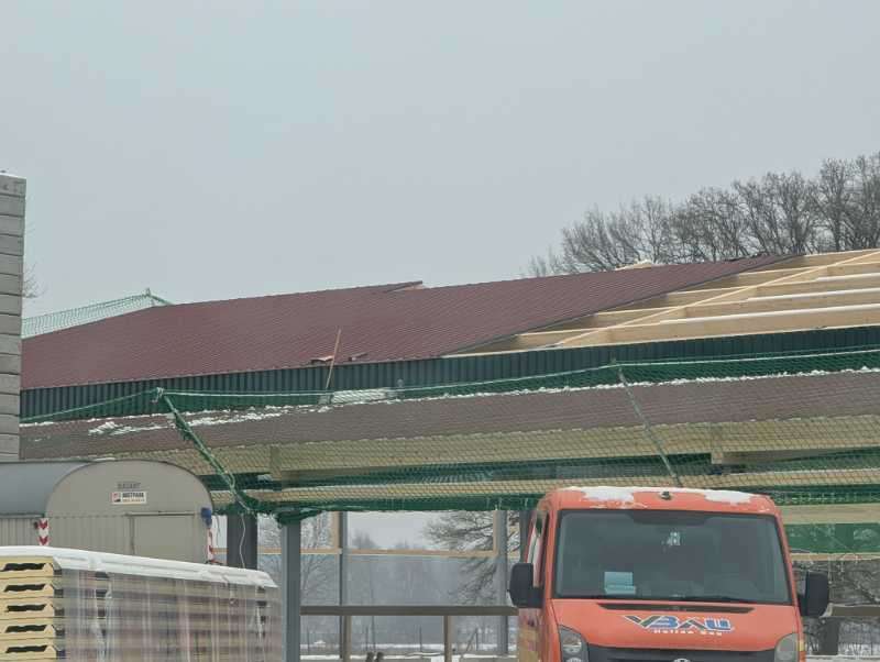 Zumindest die Halle hat jetzt ein Dach bekommen, mit Netz und ohne doppelten Boden