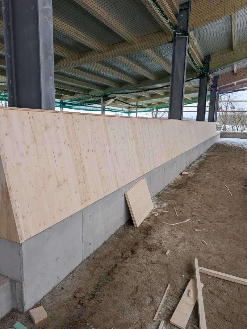 Kaum ist oben zu, wird schon die Reitbande gebaut. Erstaunlich wie schnell das jetzt geht